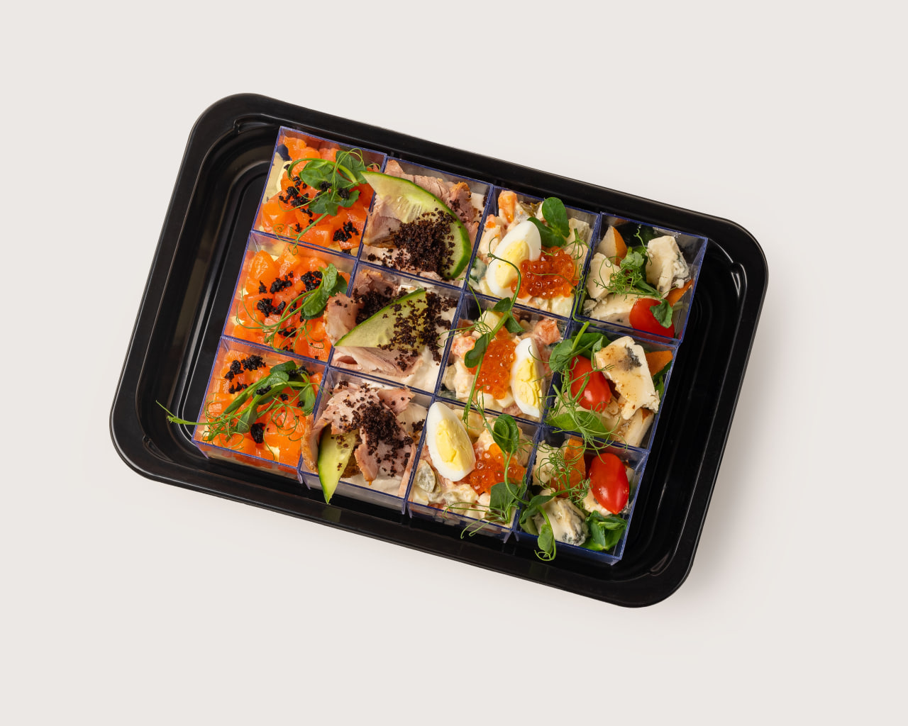 Мини салат «Оливье с копченым лососем» – 3 шт.