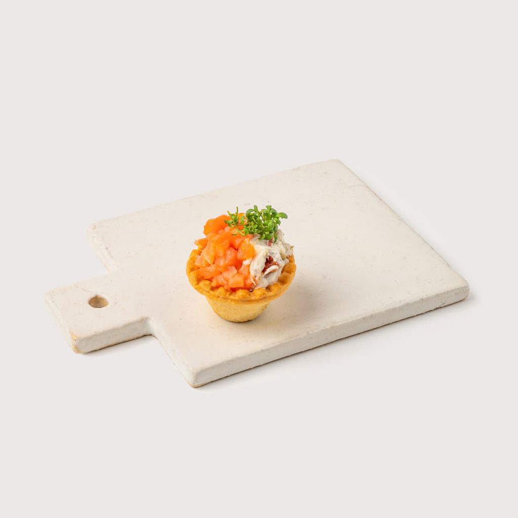 Тарталетка с копченым лососем, сливочным сыром и вялеными томатами