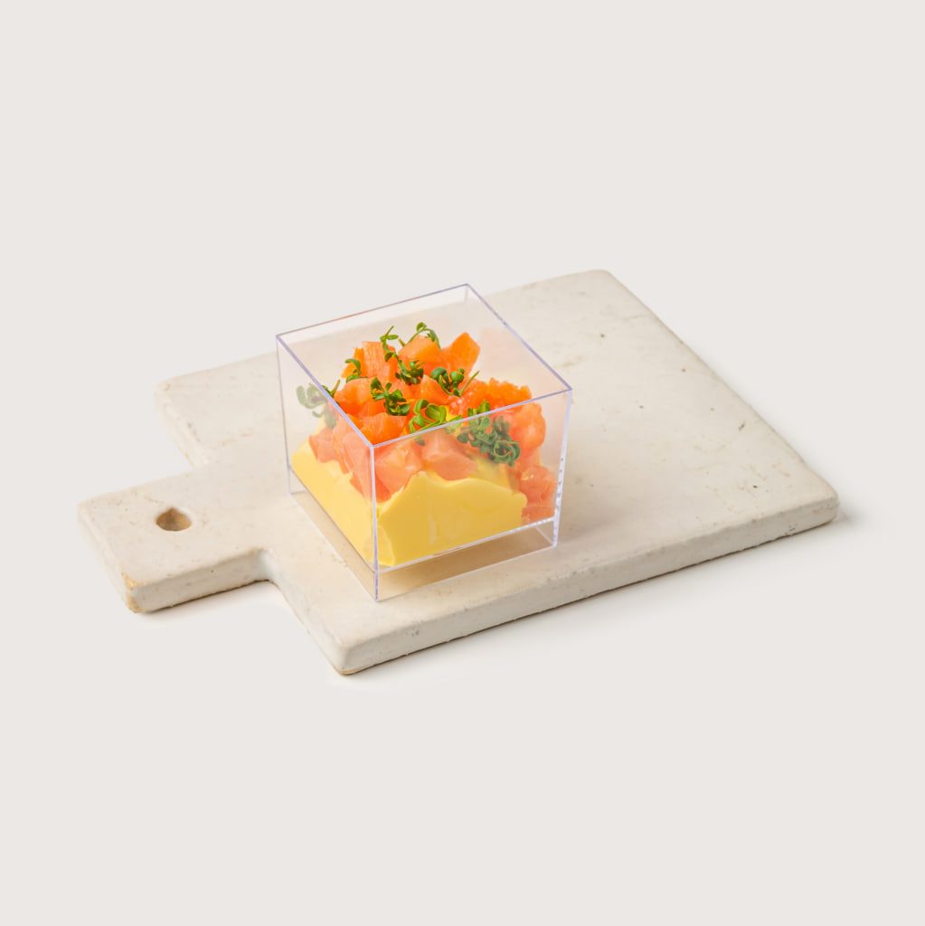 Веррин с тартаром из с/с лосося на сырном креме с маракуйей